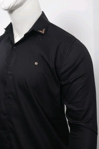 Elevate your evening attire with this sophisticated black satin shirt. The luxurious fabric and sleek design make it perfect for special occasions. The full sleeves and button-down closure add a touch of classic elegance.